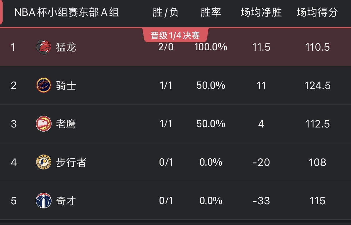 東部A組這邊,猛龍2勝0負高居榜首,更為主要的是他們在首戰擊敗了騎士與老鷹出線直接的競爭對手,目前與老鷹出線的競爭對手。