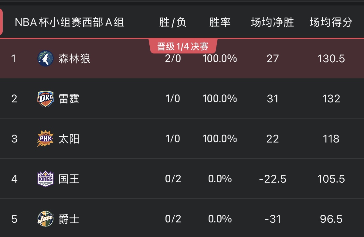 6686體育11月15日訊 今日的NBA杯分組賽已經全部終結,而6個小組的排名也發生了變化。