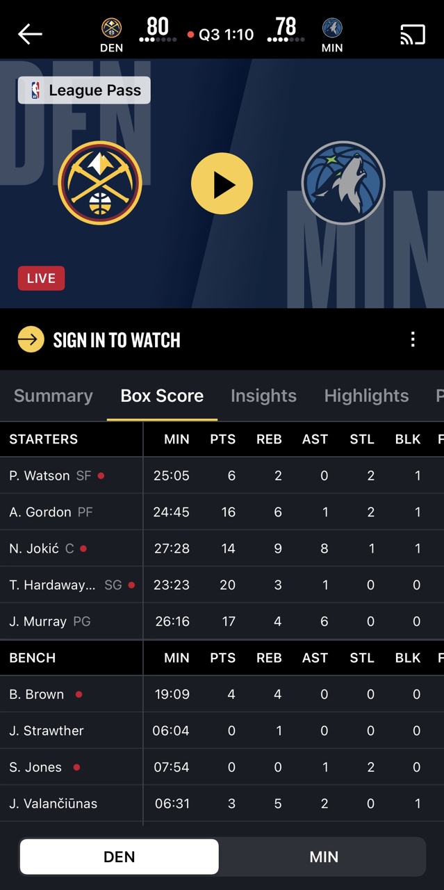 金塊強勢擊敗灰狼取得7連勝,NBA官網數據仍在修補中