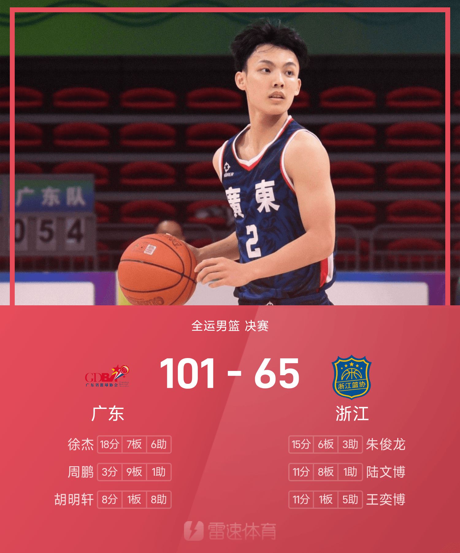 徐傑砍下全場最高的18分7板6助,趙睿13分4搶籃板5助攻,率領廣東勝利取勝,奪得本屆全運男籃金牌。