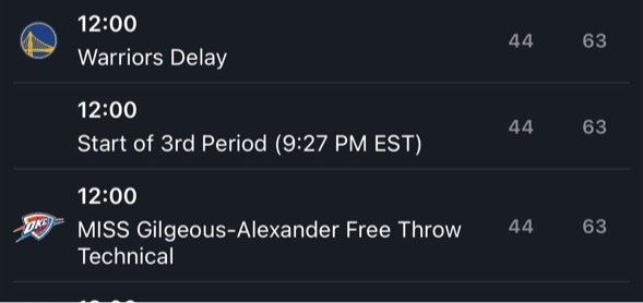 從NBA官網play-by-play中可以看到,在第三節開端前,亞歷山大獲得了一次技術籃罰的機會,但他錯罰了這次。