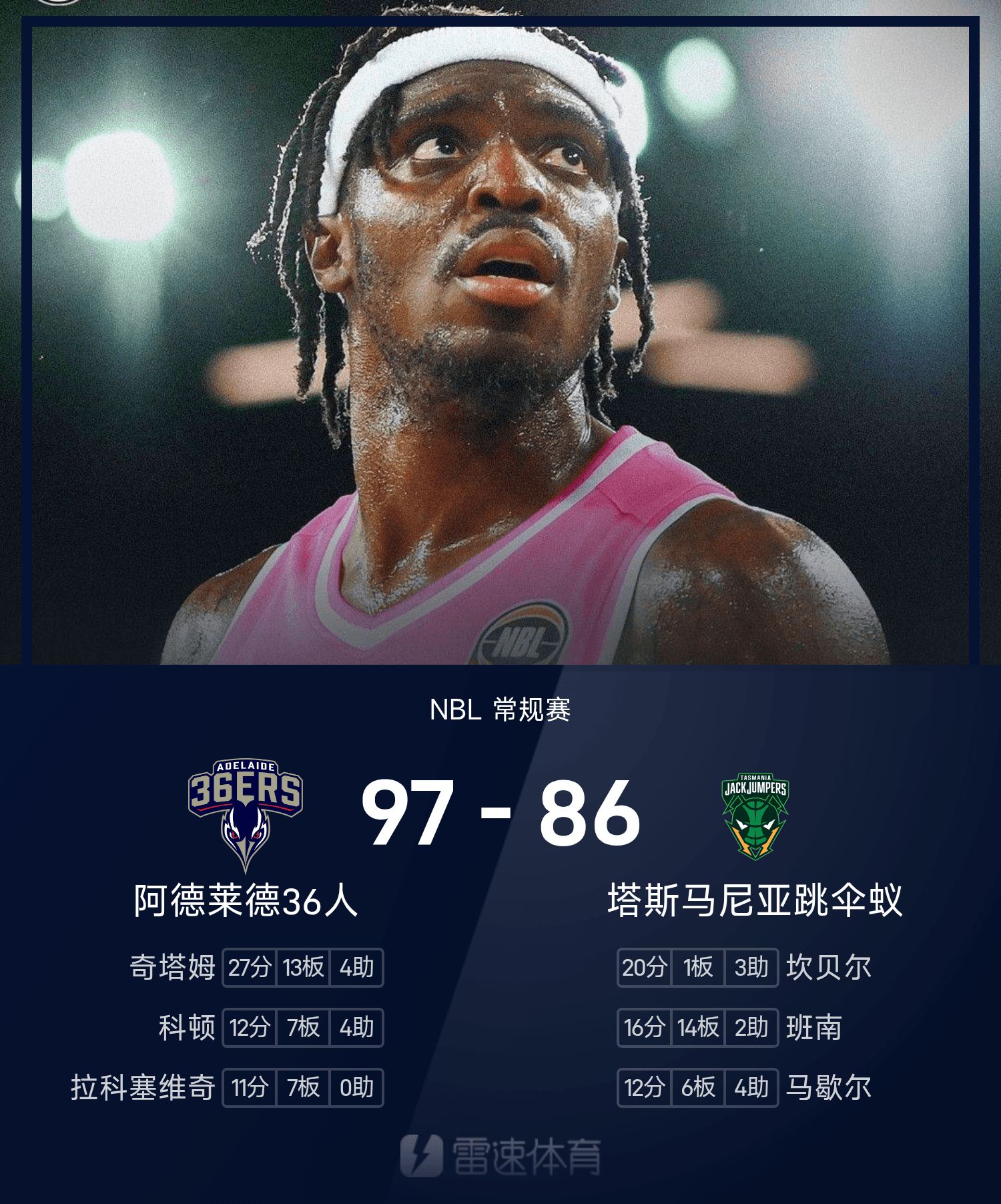 NBL戰報:奇塔姆27分13板,36人97-86擊敗跳傘蟻