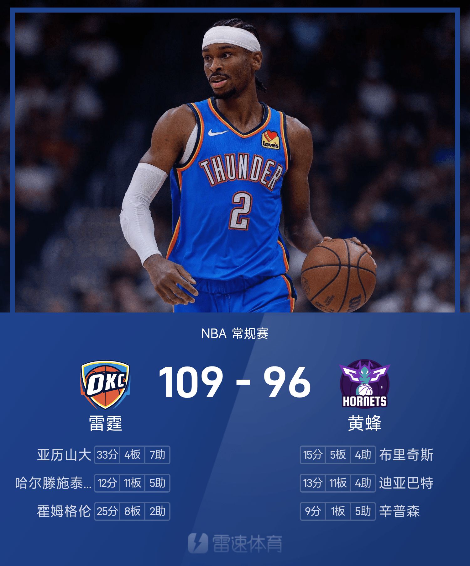 亞歷山大爆轟33分,雷霆取得開季13勝1負的驕人戰績。