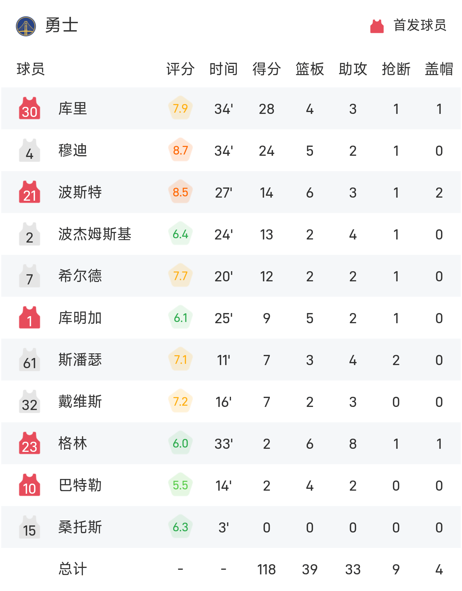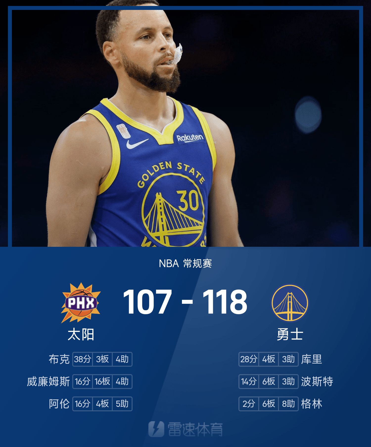 NBA戰報:柯瑞28分,布克空砍38分,勇士118-107擊敗太陽