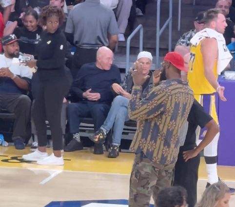 首節競賽終結,節間休息時詹姆斯走上場地,與裁判員溝通了一會兒。