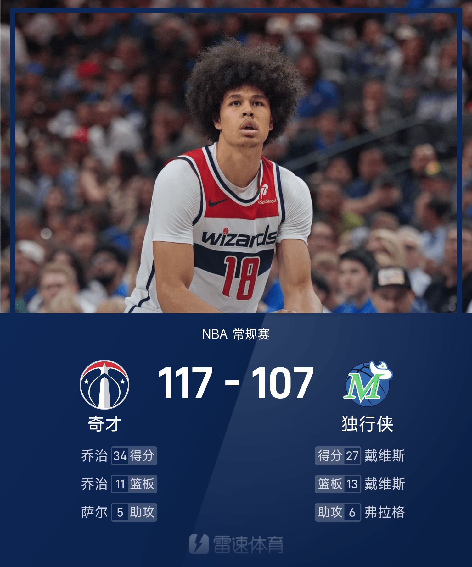 NBA戰報:喬治34分11板,巫師117-107擊敗獨行俠