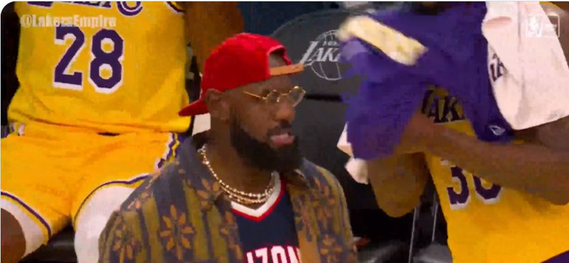 雖然因為受傷病無法出戰,但詹皇仍然不停和場上的隊友溝通,積極互動。