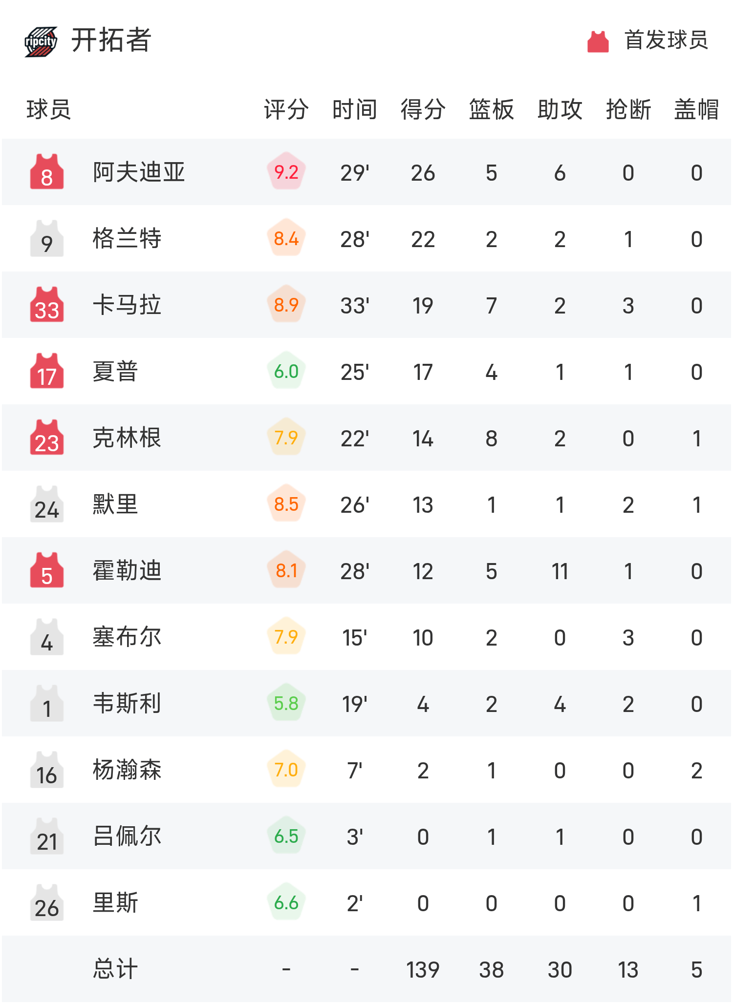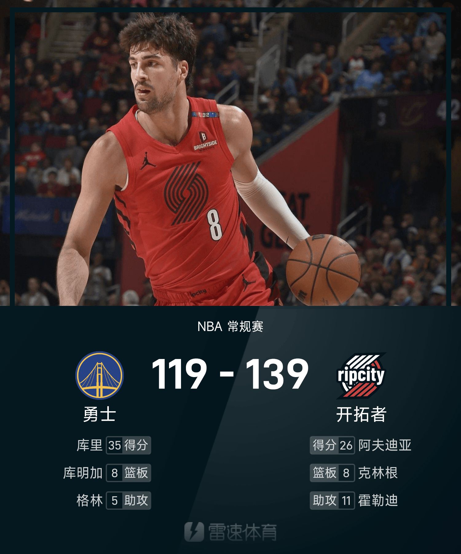 NBA戰報:楊瀚森2分1板2帽,拓荒者139-119勇士