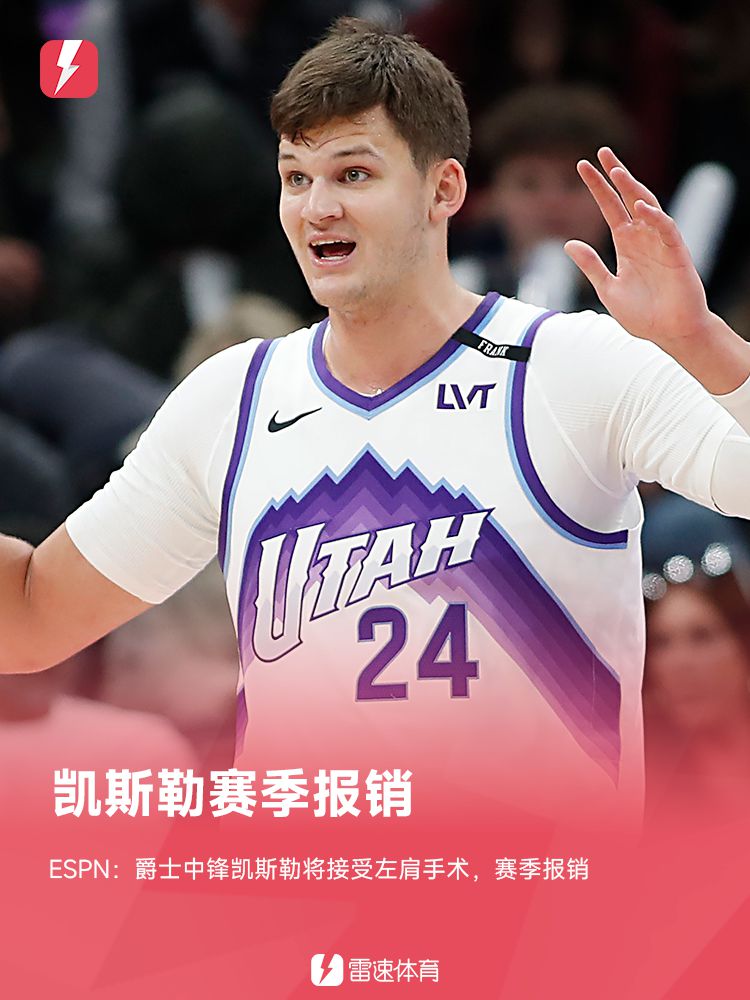 Shams:爵士五號位凱斯勒接受左肩手術,賽季報銷