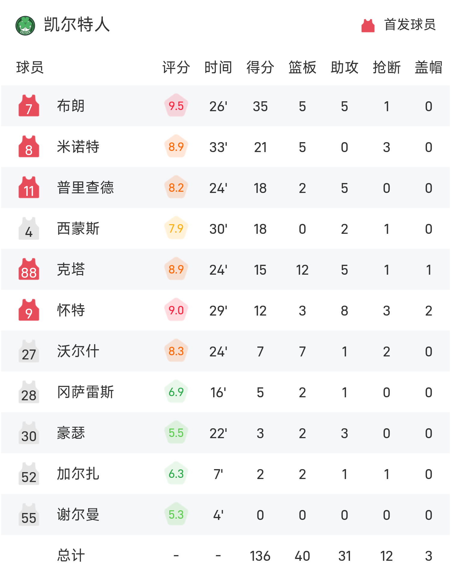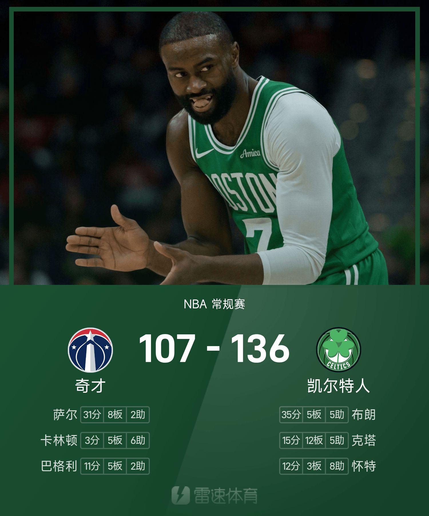 NBA戰報:布朗35分,塞爾提克136-107大勝奇才