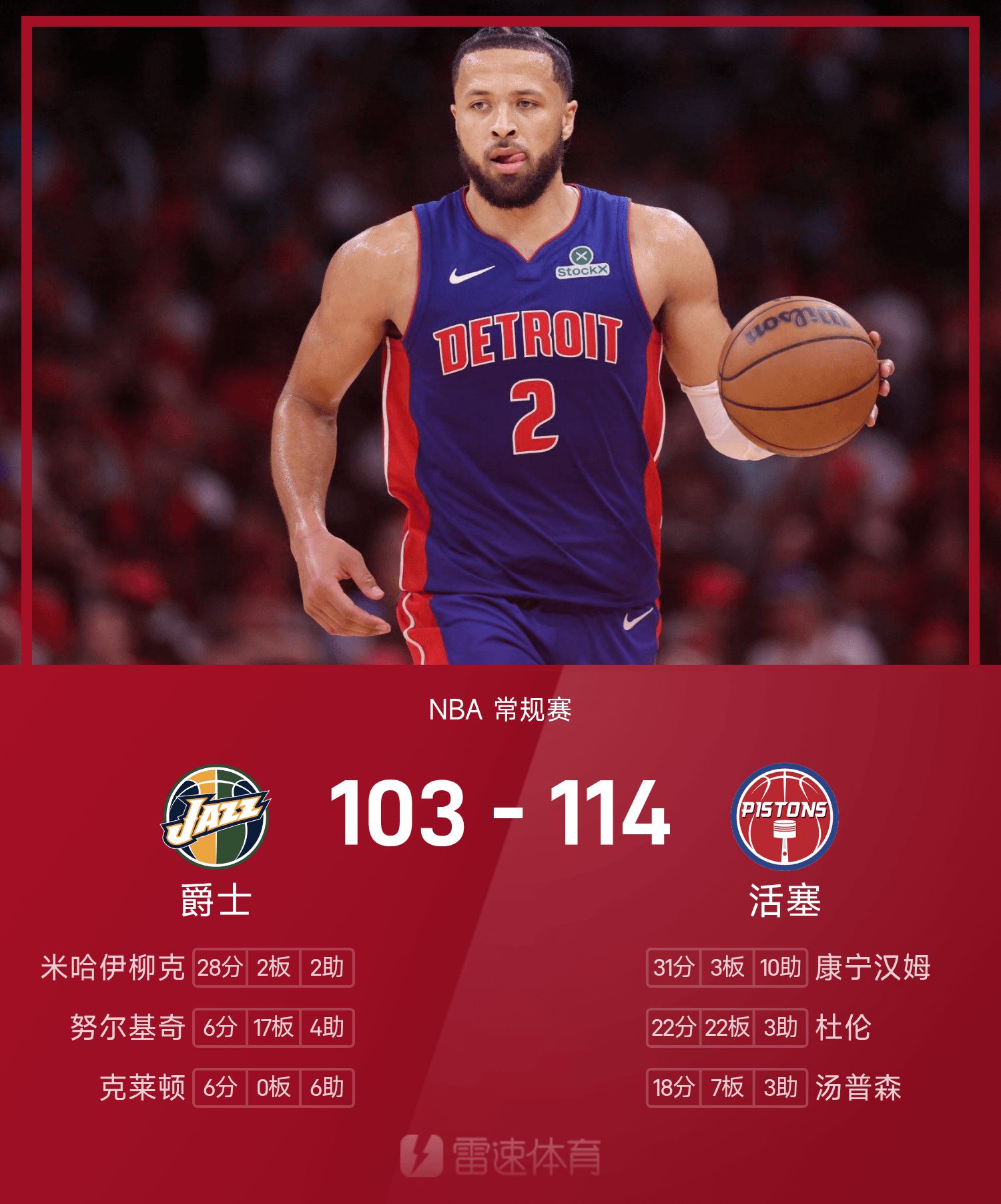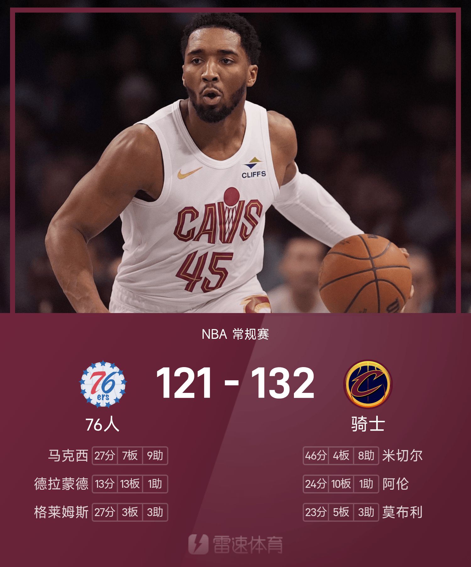 米切爾爆爆賽季新高46分,主人隊。