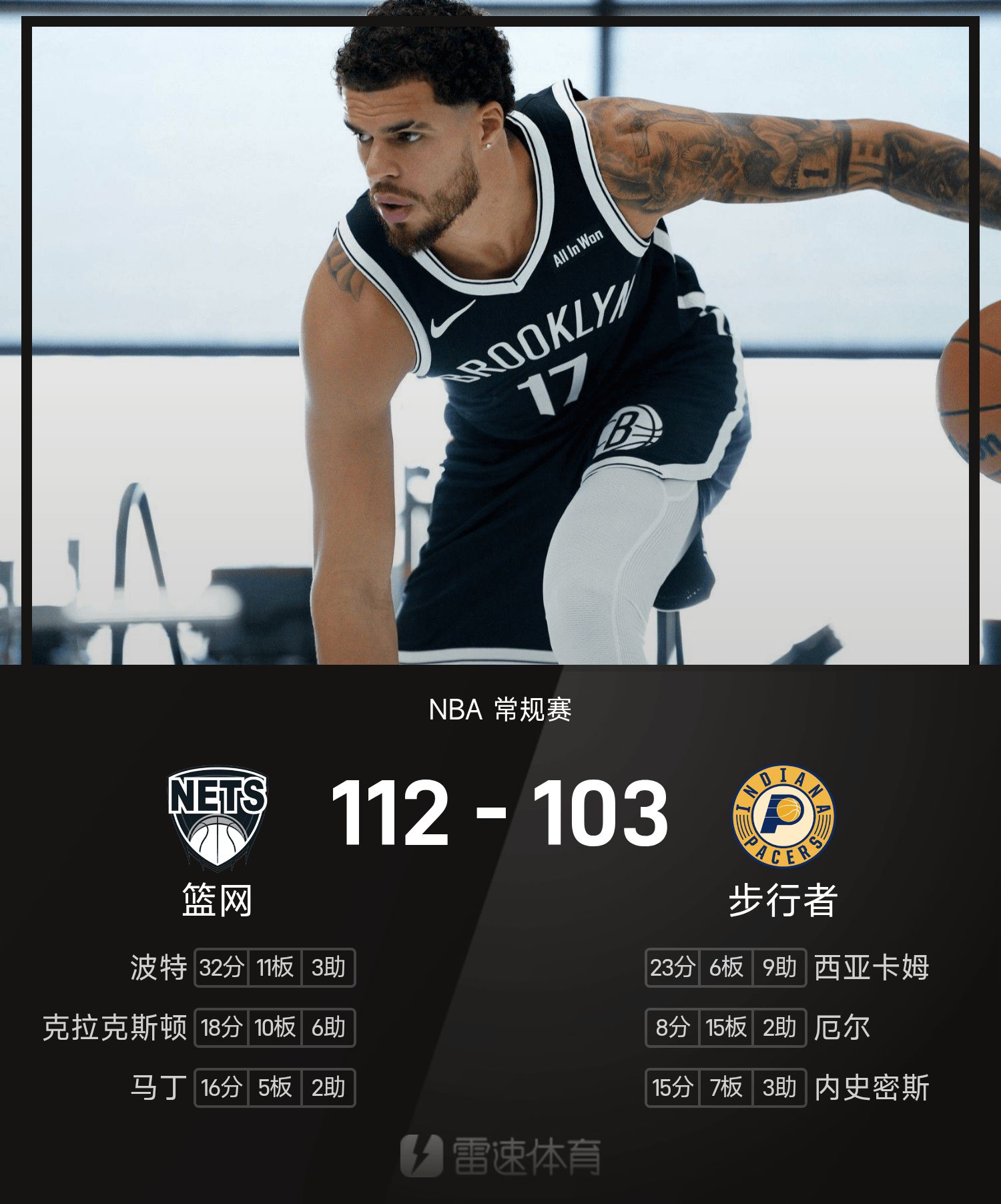 籃網112-103步行者
