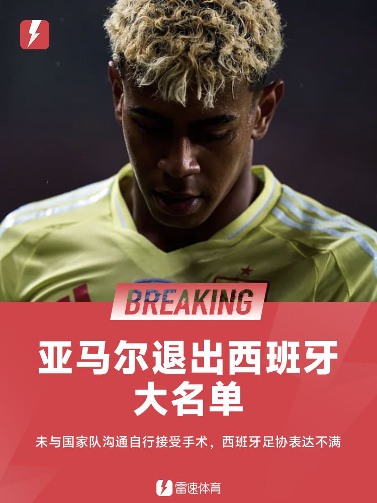 值得一提的是,這已經是亞馬爾連續第二次在國家隊已經公佈大名單之後,以恥骨傷勢為由退出球隊,且在此過程中,均缺乏與西班牙足協的直接溝通。