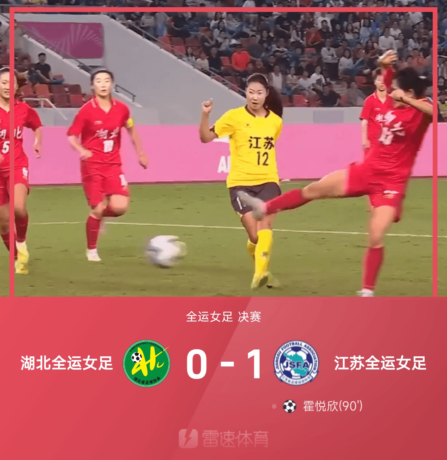 全運女足戰報:霍悅欣最後一投,江蘇女足1-0戰勝湖北女足奪金牌