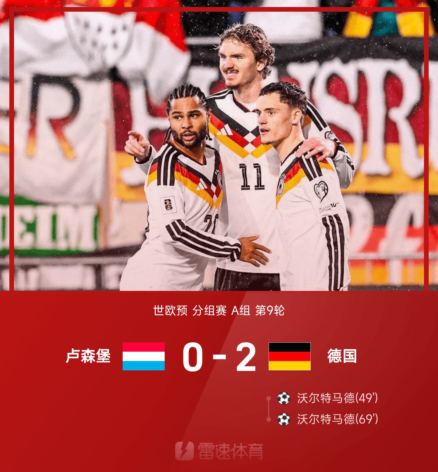 世歐預戰報:沃爾特馬德梅開二度,德國2-0勝盧森堡