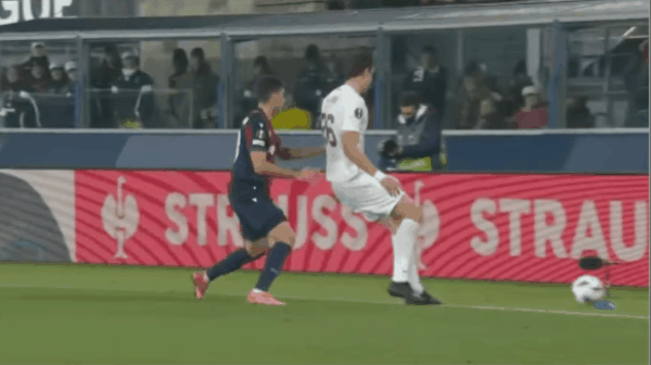 42’是十二碼麼?波隆那球員三秒區內被拉倒,裁判卻吹罰假摔