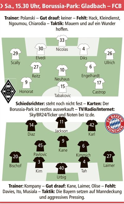 拜仁慕尼黑方面預測首發