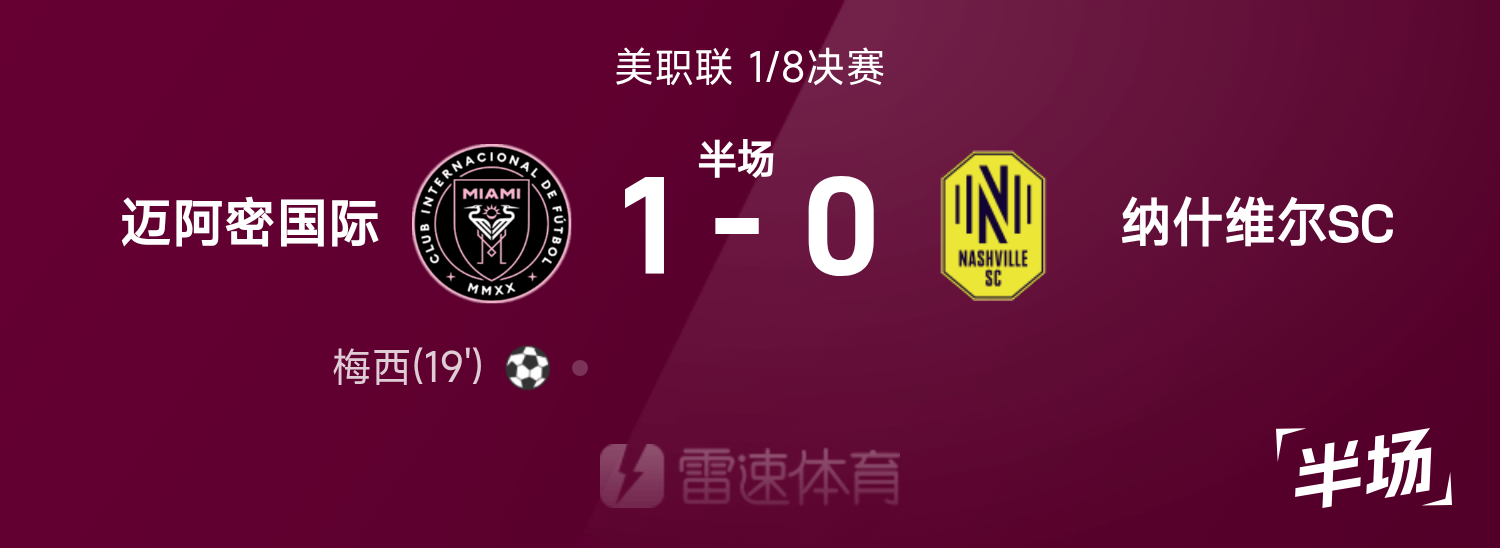 美職半場:蘇牙助攻梅西頭槌破門,邁阿密暫1-0納許維爾