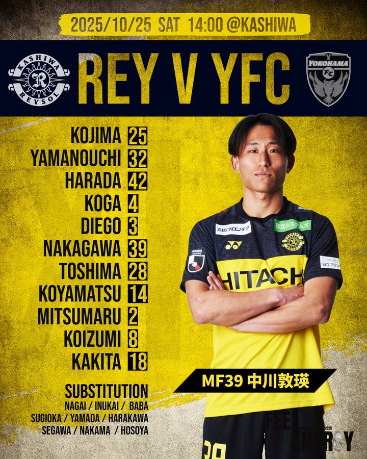 6686體育10月25日訊 日職聯第35輪,柏太陽神主隊場對橫濱FC。賽前,雙方公佈先發名單。