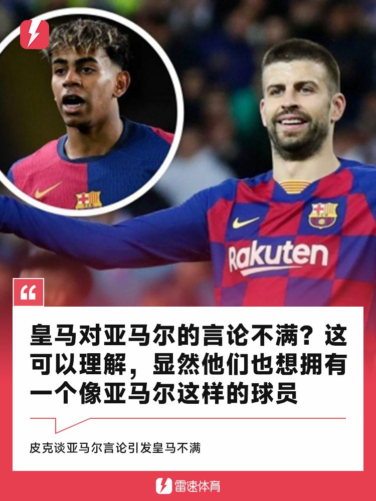 6686體育10月25日訊 在本週末西班牙國家德比前,亞馬爾在參加某檔節目時諷刺皇馬“偷竊、抱怨、搞小皇竊、抱怨、搞大爭議”,這引發了馬皇馬「偷竊、抱怨、搞小動作”,這引發了馬皇馬「方面的不滿。對此,巴薩名宿皮克表示,皇馬方面批評亞馬爾的言論是可以理解的,顯然他們也想擁有亞馬爾這樣的球員。