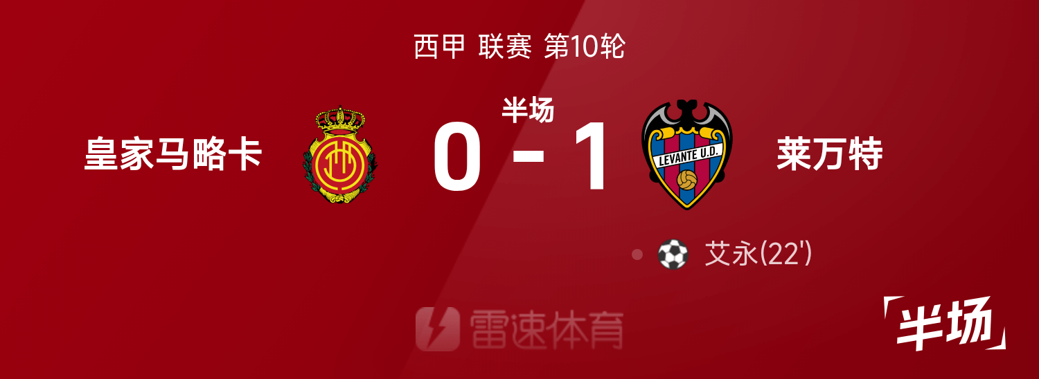 西甲半場:艾永遠推遠角建功,萊萬特暫1-0馬略卡