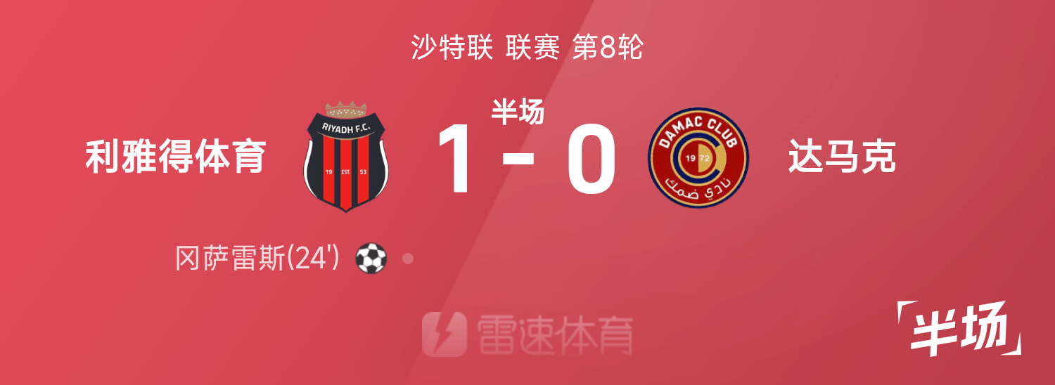 沙烏地阿拉伯聯半場:岡薩雷斯頭槌破門,利雅德體育暫1-0達馬克