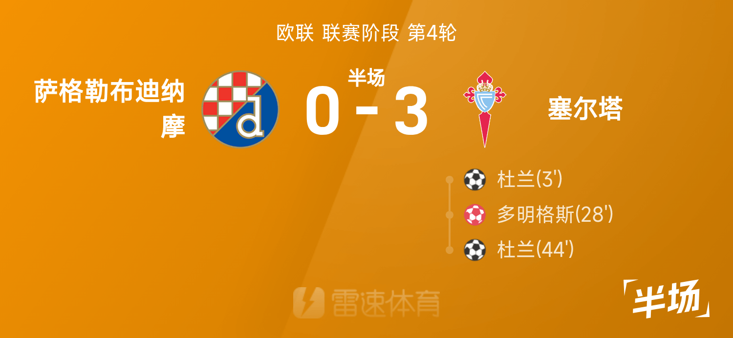 668611月第13867日新聯賽第13868611月第686117日。半場戰罷,雙方賽果分暫為薩格勒布迪納摩0-3塞爾塔,杜蘭上演梅開二度,多明格斯自擺烏龍。
