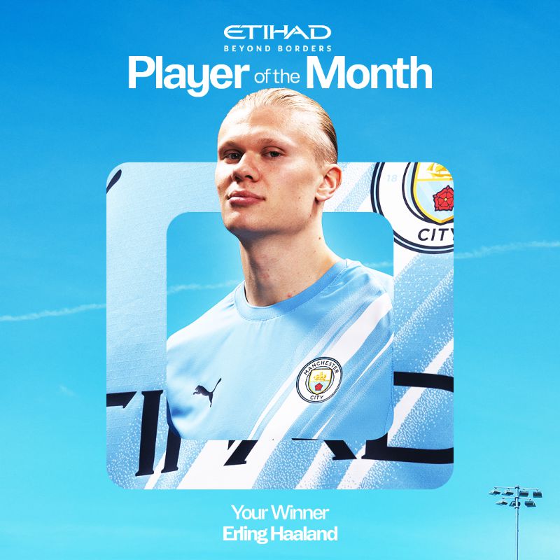 5場6球!曼城官方:哈蘭德當選球隊十月最佳球員