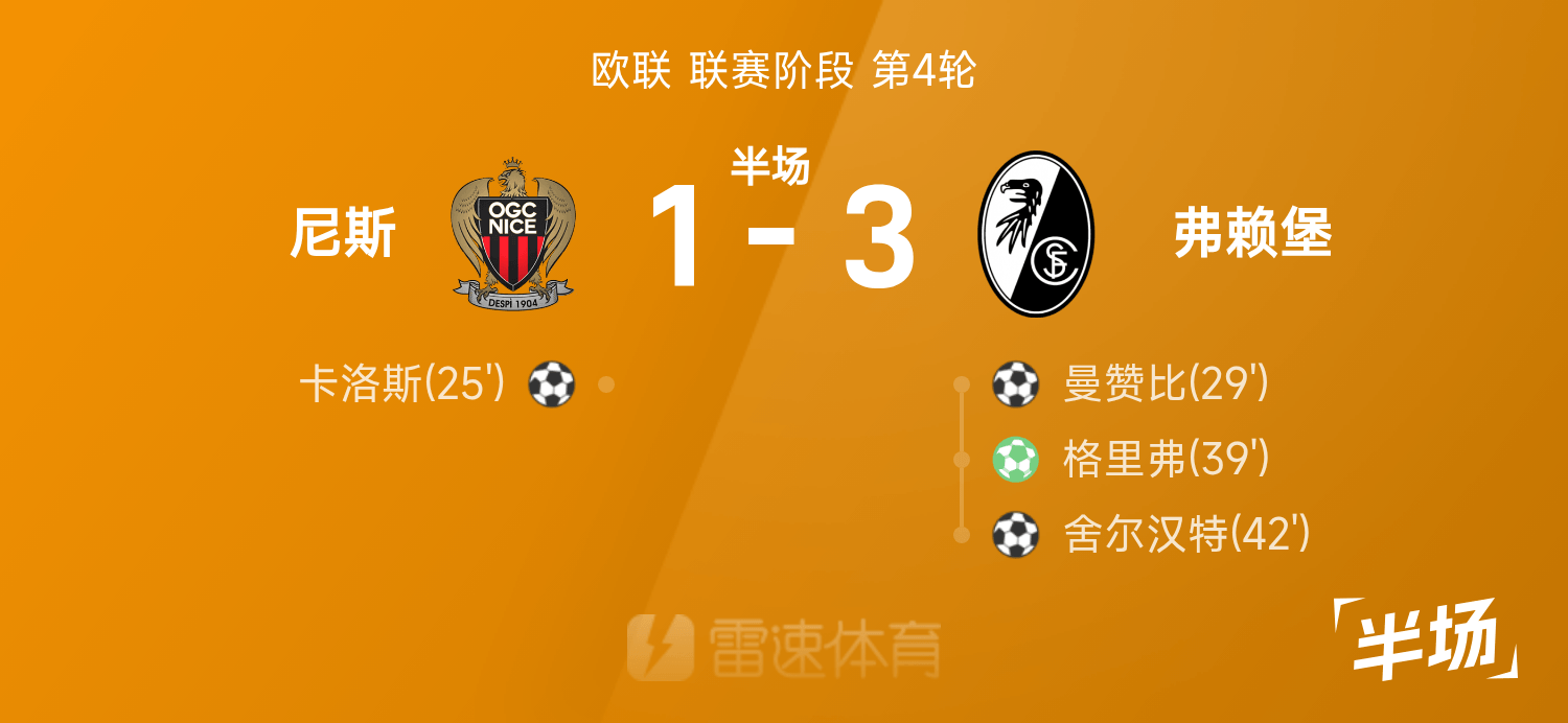 歐聯半場:鈴木唯人助攻+造點,弗賴堡3-1尼斯
