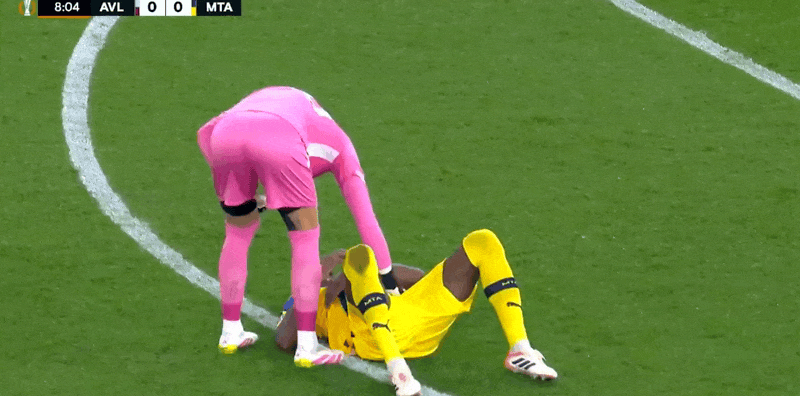 2’奧納納斷球後送直傳球,什洛莫倒地鏟球化解羅傑斯單刀
