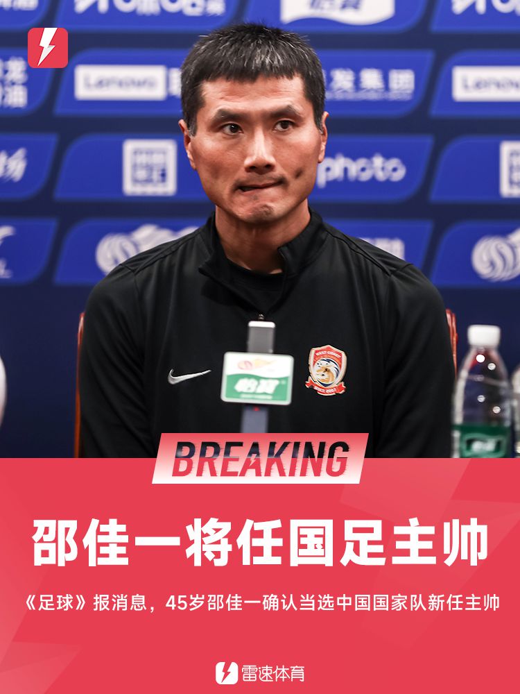足球報:邵佳一確認當選中國國家隊新任主帥
