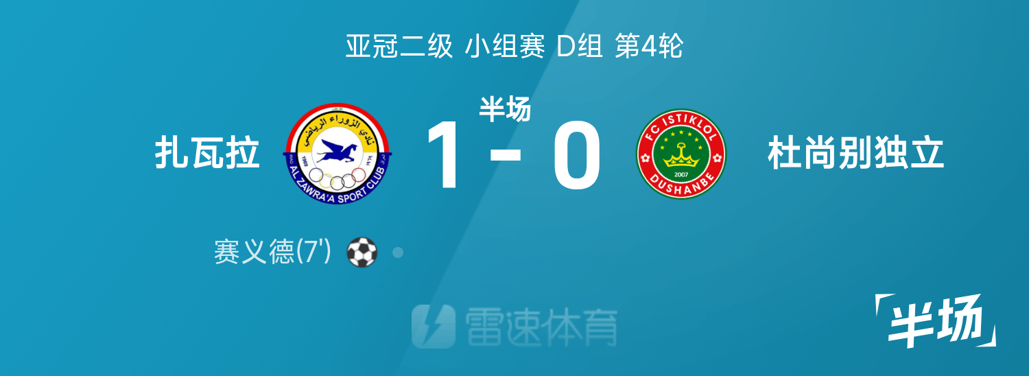 亞冠二級半場:賽義德閃擊破門,札瓦拉暫1-0杜尚別獨立