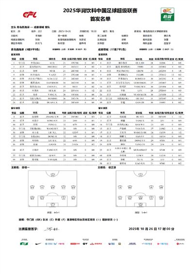 6686體育10月26日訊 中超聯賽第28輪,青島西海岸主隊場戰成都首發城,賽前雙方蓉出爐。