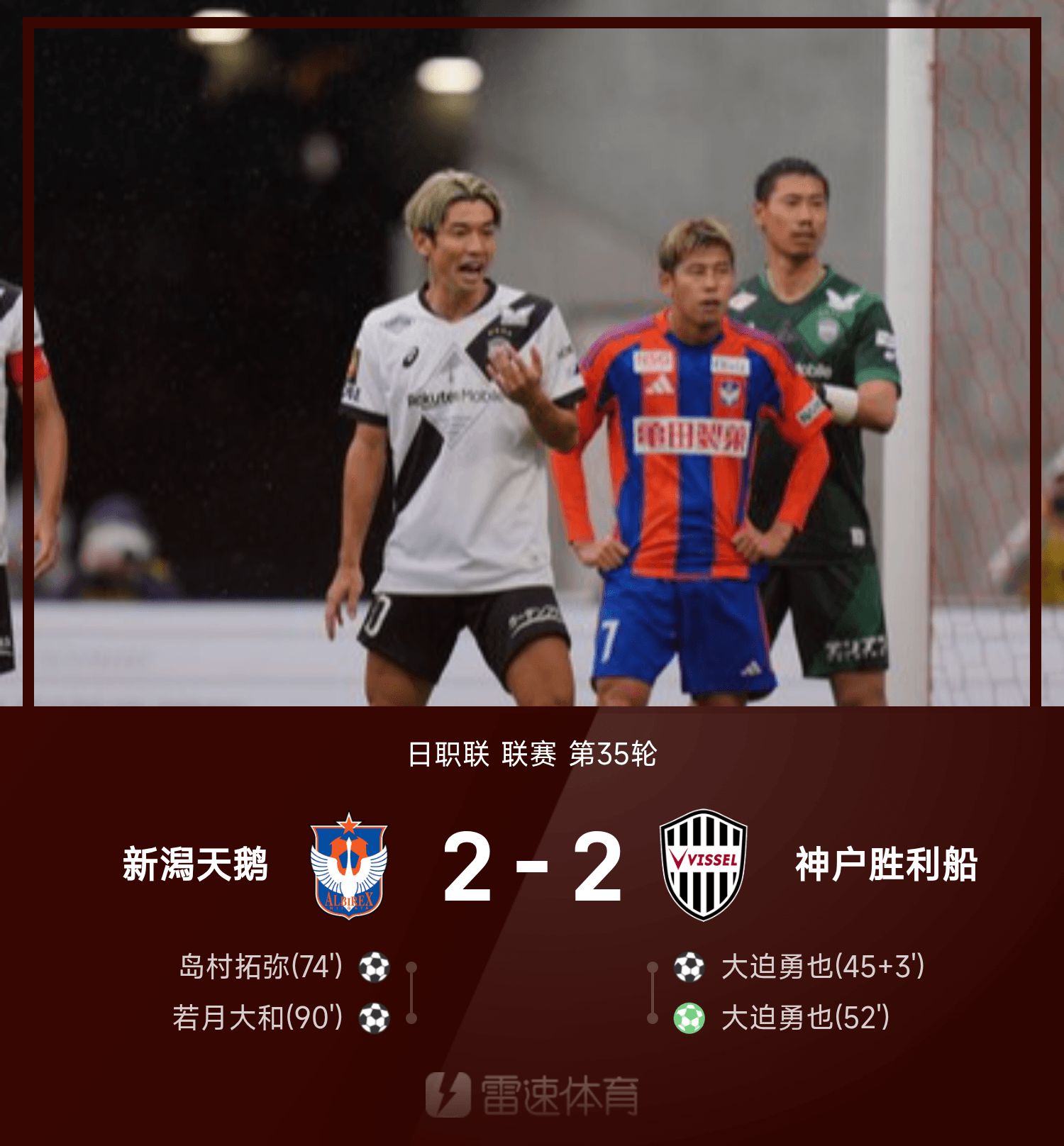 日職聯戰報:若月大及後備隊員救主,新潟2-2逼平神戶