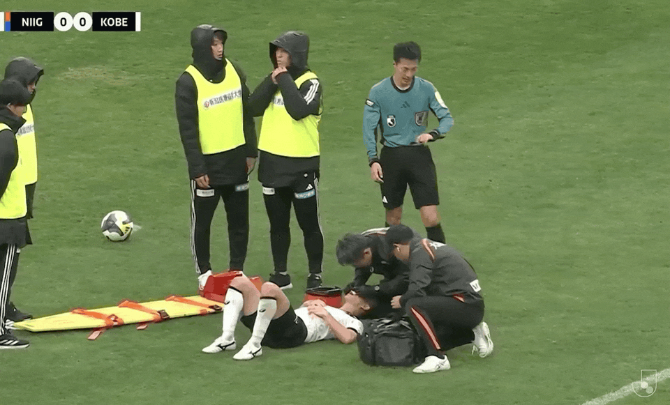 38’刺刀見紅!井出遙也與對手相撞流鼻血,接受治療後重返賽場