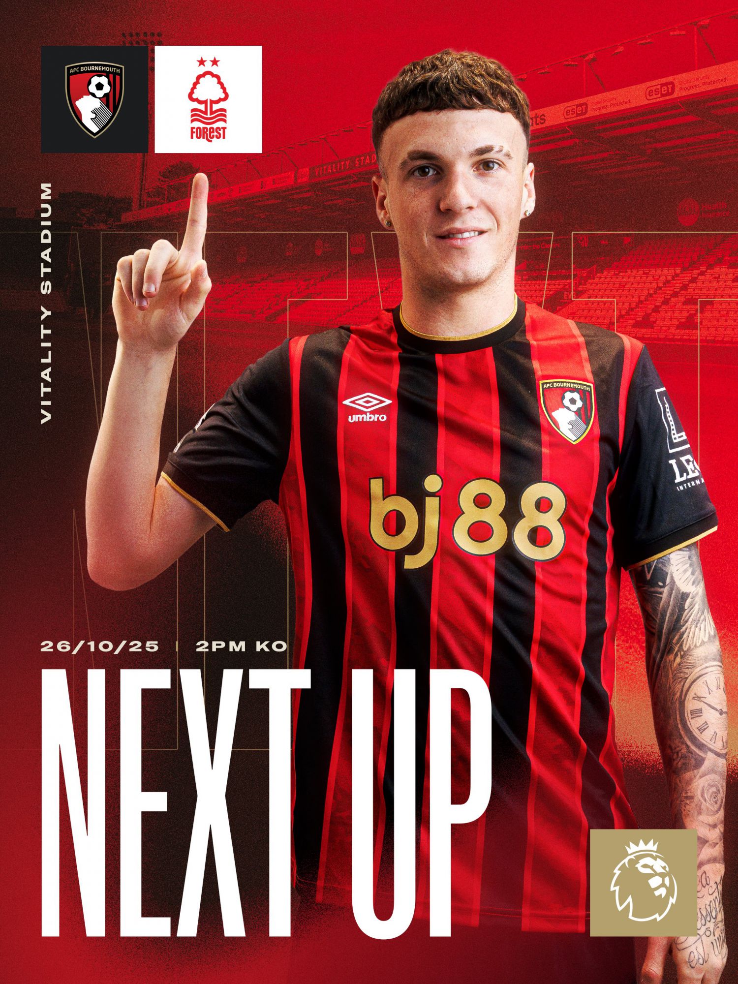 北京時間10月26日晚間22:00,2025/26賽季英超聯賽事第9輪,「紅櫻桃」伯恩茅斯將坐諾丁漢場活力比賽場對陣諾丁漢場。