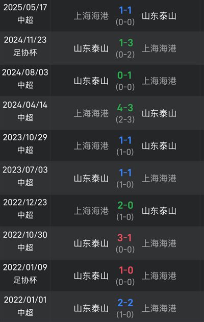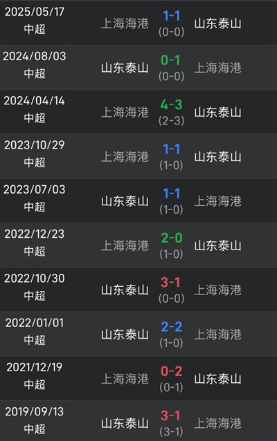 泰山上次擊敗海港在1093天前,近10次交鋒雙方各勝3場