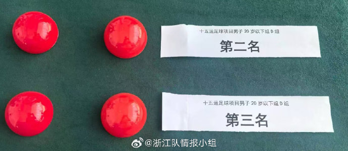 浙江U20因在分組賽終結後與同組的新疆U20的積分、淨勝球、進球數、紅警告牌數均相同,所以只能透過抽籤決定名次。