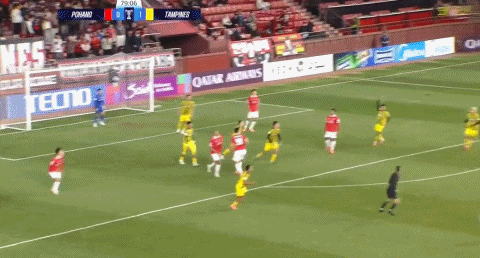 87’趙尚赫跟進射門破門,浦項鐵人扳平賽果分,暫1-1淡濱尼流浪者