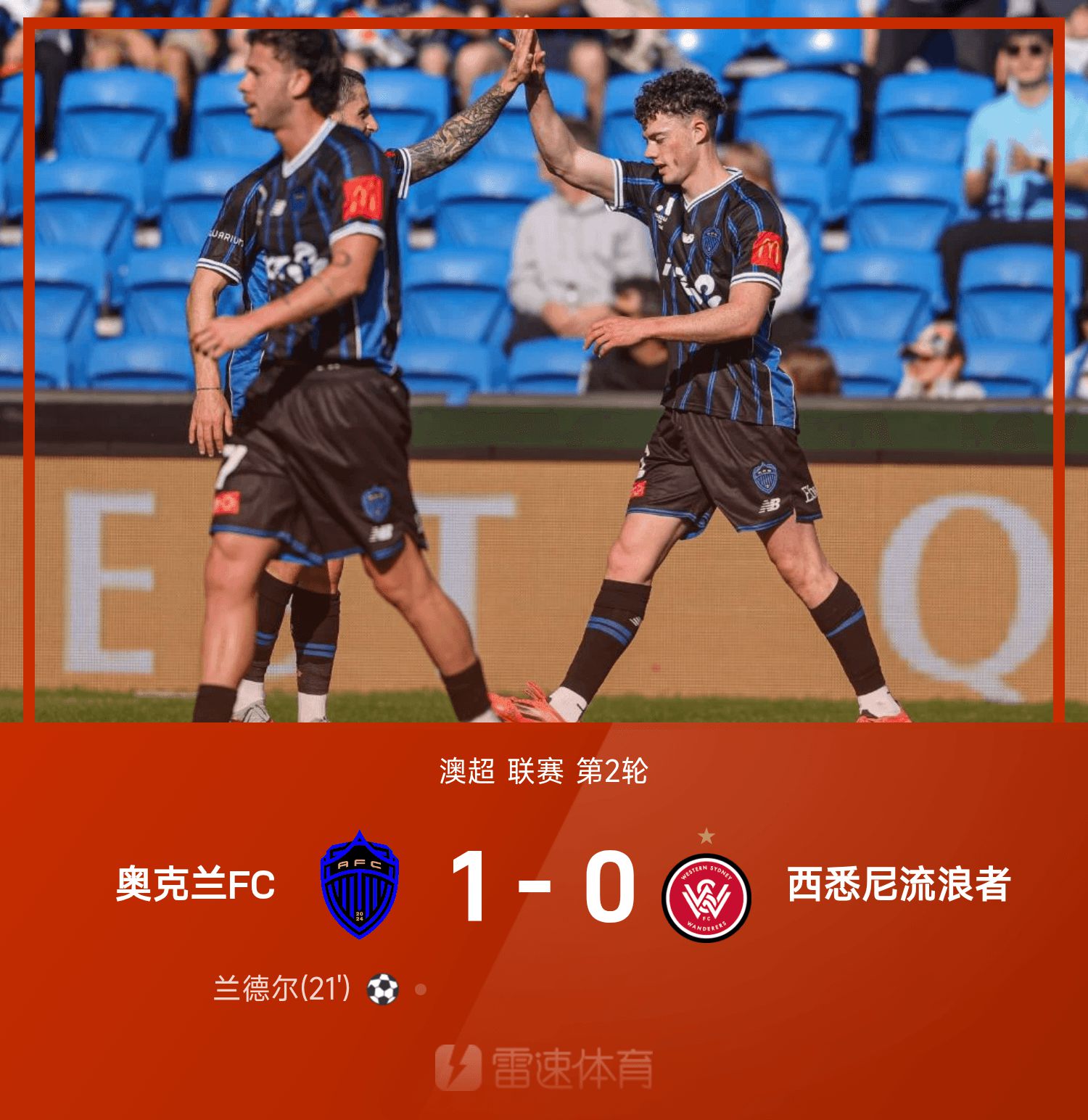 6686體育10月25日訊 25/26賽季澳超聯賽第2輪,奧克蘭FC主隊場以1-0力克西悉尼流浪者。上半時競賽,蘭德爾外圍射門建功,助奧克蘭城取得領跑位;下半時競賽,雙方皆未能破門。