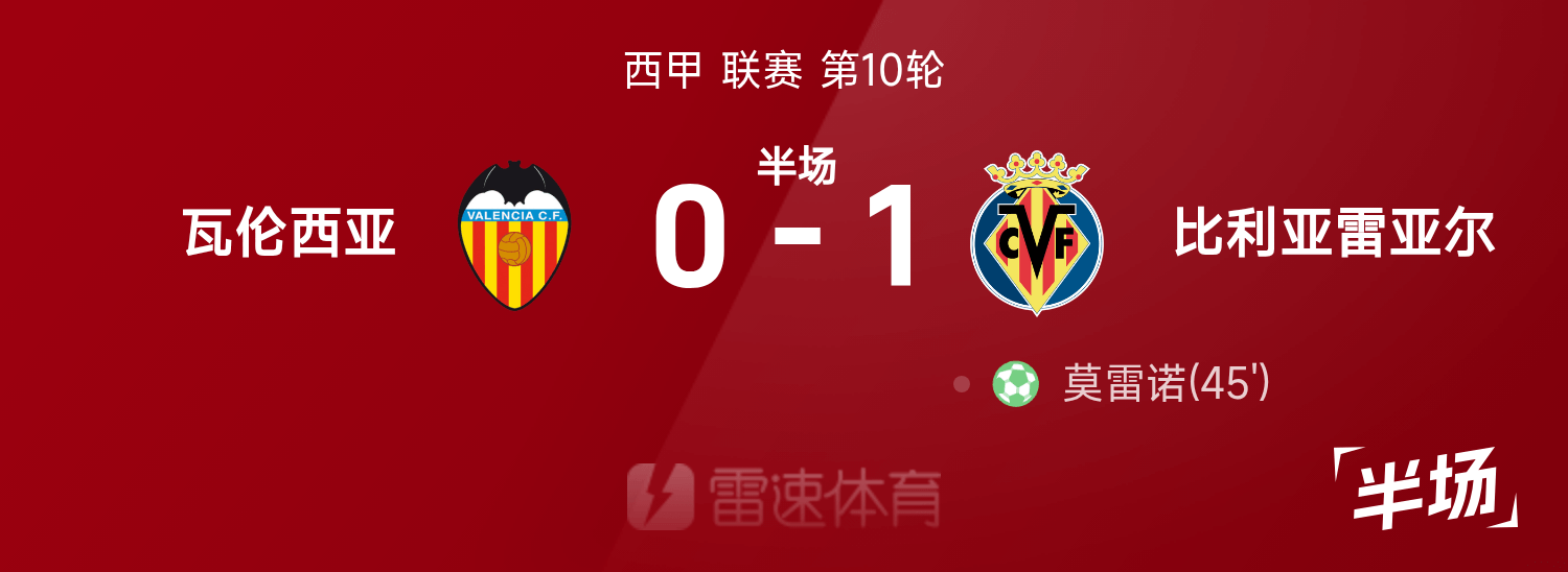 西甲半場:莫雷諾造點+主罰破門,黃潛1-0領跑位瓦倫西亞