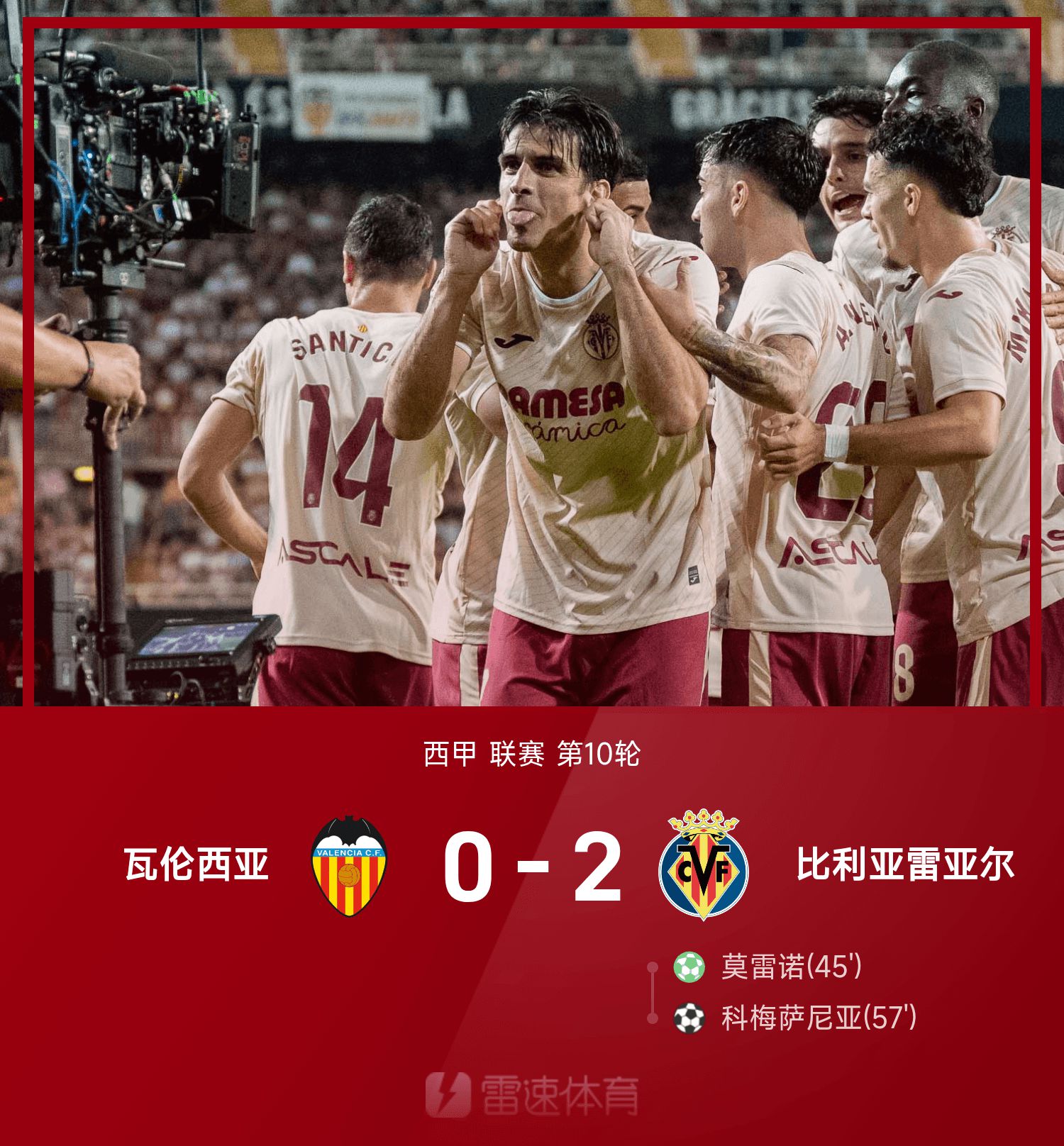 6686體育10月26日訊 25/26賽季西甲聯賽第10輪,比利亞擊敗雷亞爾2-0005-000天瓦倫西亞。第45分鐘,莫雷諾造點並親自主罰命中,300場里程碑破門;第57分鐘,科梅薩尼亞跟進射門破門鎖定勝局。