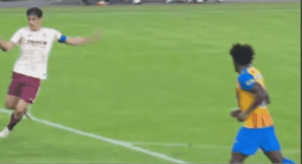 19’黃潛前場連續施壓,主裁判化身守衛球員阻擋哈維·格拉打門
